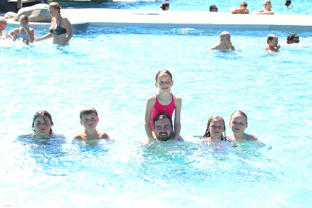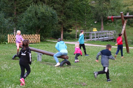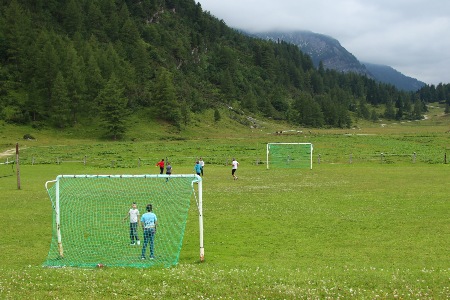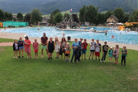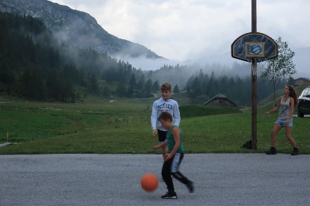 Montag, 12. August. Heute fuhren wir bei herrlichem Sonnenschein nach Mauterndorf. Hier versorgten sich die Kinder im Supermarkt mit neuen Süßigkeiten. Dann ging es bei knapp 30° C ins Freibad, wo sich die Kinder ausgiebig austoben konnten. Bei der Rückfahrt nach Obertauern regnete es leicht und in der Folge zogen immer wieder Wolken über unser Spielgelände. Dies konnte uns aber nicht davon abhalten, den Abend mit Ballspielen zu beenden.