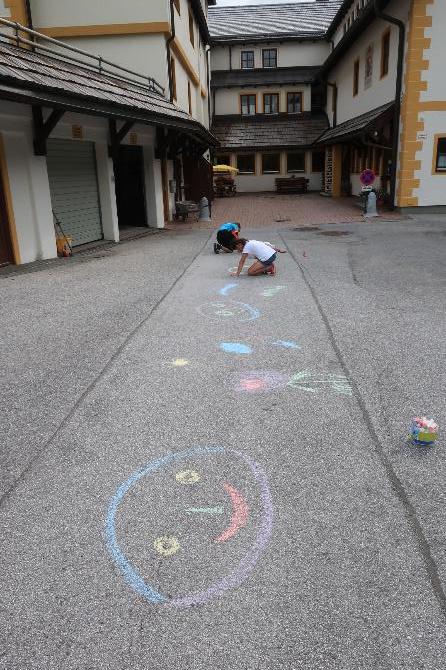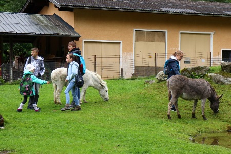 Mittwoch, 14. August. Auch heute zogen wieder zahlreiche Wolken über die Berge, die auch einige Schauer mitbrachten. Daher verkürzten wir unsere Tagestour zum Wildpark und in die Taurach-Schlucht in Untertauern. Erst am frühen Abend lockerte die Bewölkung wieder auf, so dass wir draußen spielen konnten.