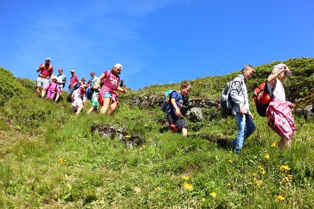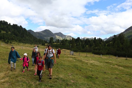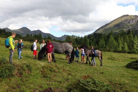 Dienstag, 20. August. Mit dem Bus fuhren wir zur Gnadenalm und stiegen von dort zum malerischen Tauernkarsee auf. Hier machten wir eine längere Mittagspause. Gut gestärkt gingen wir auf dem Wanderweg zur Tauernkaralm. Abenteuerlich wurde es, als wir mehrere Bäche überqueren mussten. Dies schafften aber alle ohne sich die Füße nass zu machen. An der Alm spielten wir noch, bevor es wieder zurück nach Obertauern ging.